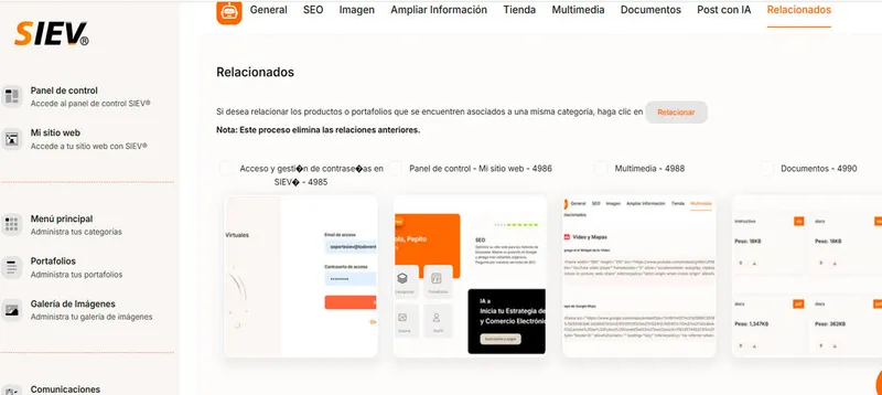 Relación automática: el sistema vinculará automáticamente los productos o portafolios que pertenezcan a la misma categoría.